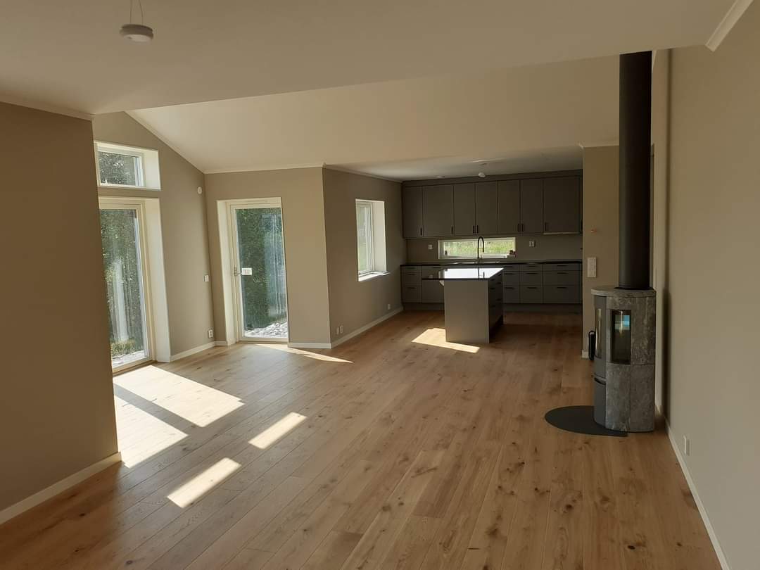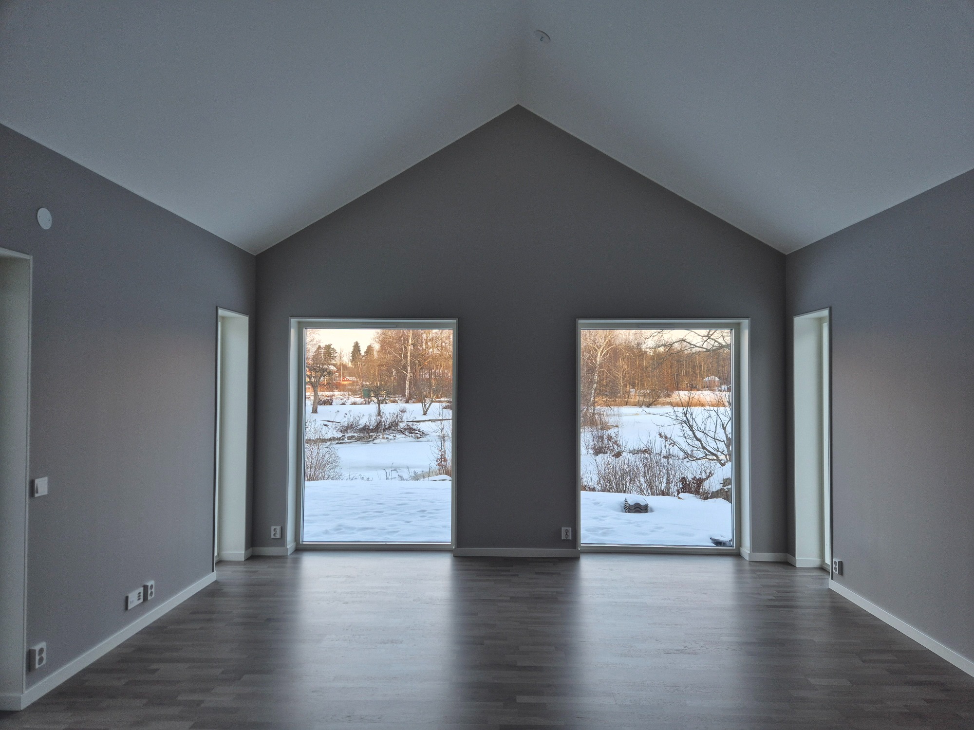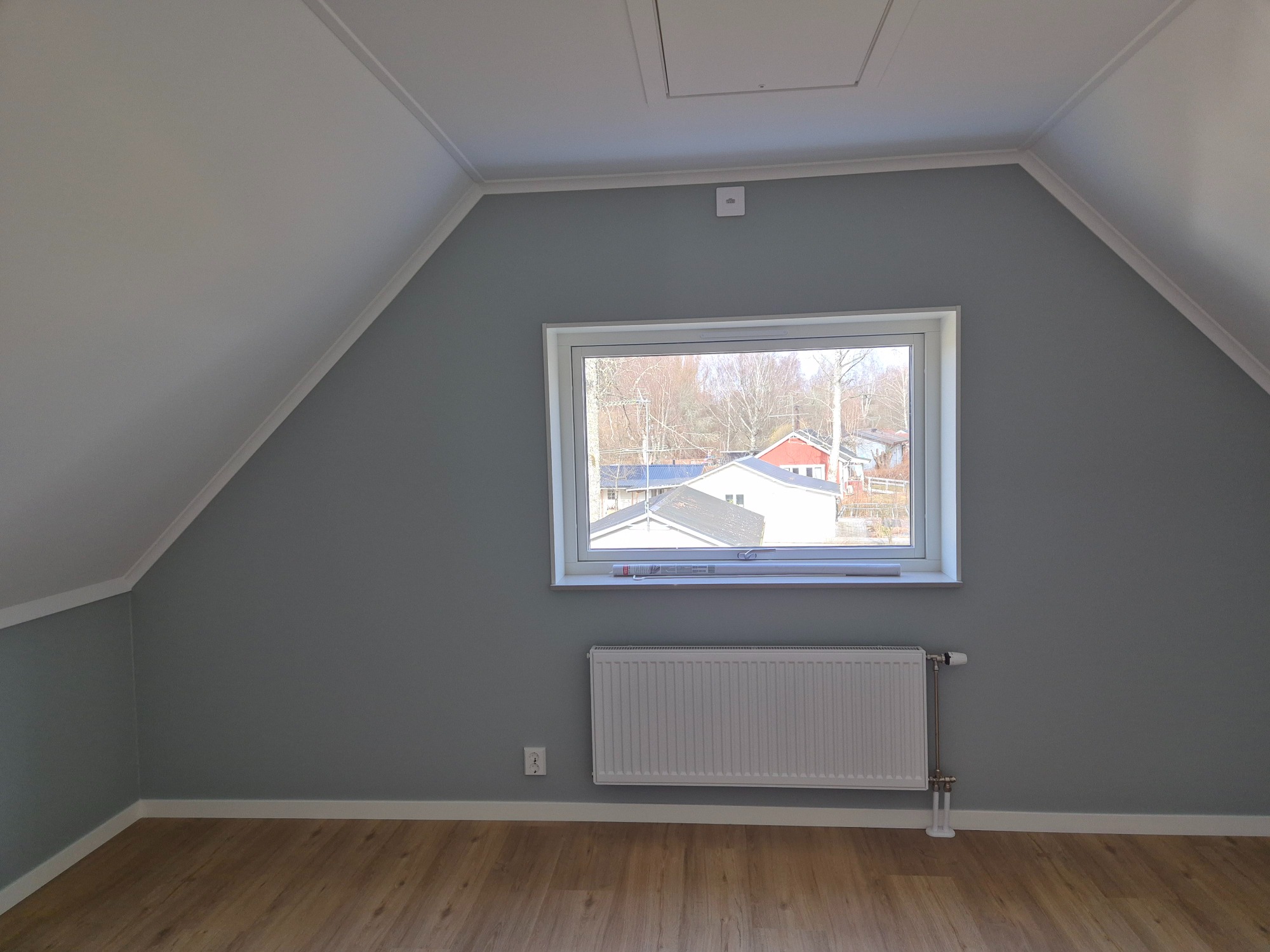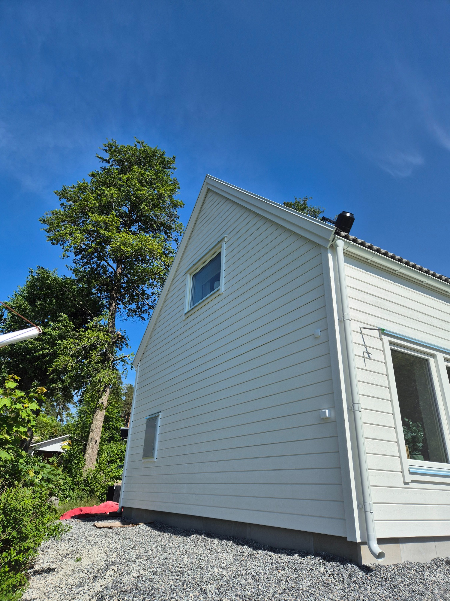 En privatperson som valde att bygga med hustillverkaren A-hus i Kullersta, Eskilstuna. Spacklade och målade hela huset, målade även garaget utvändigt.