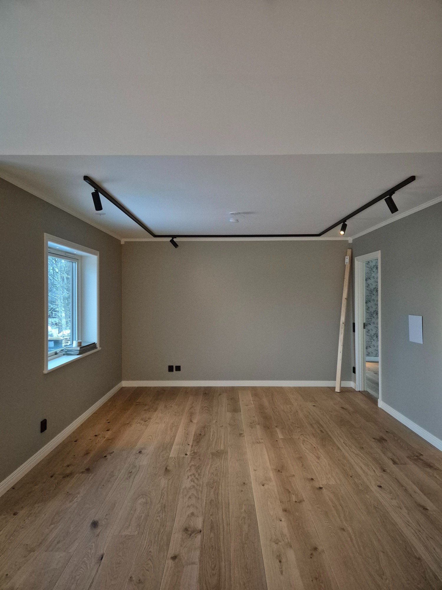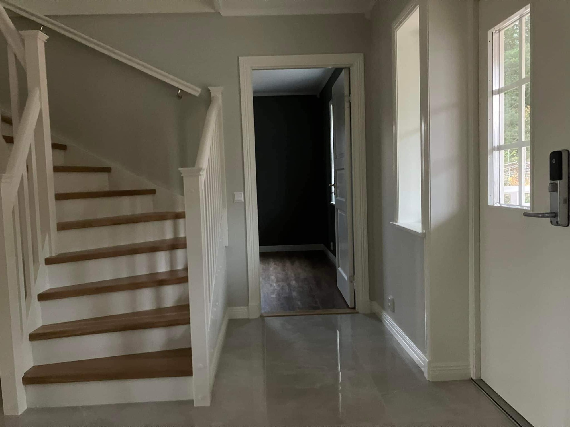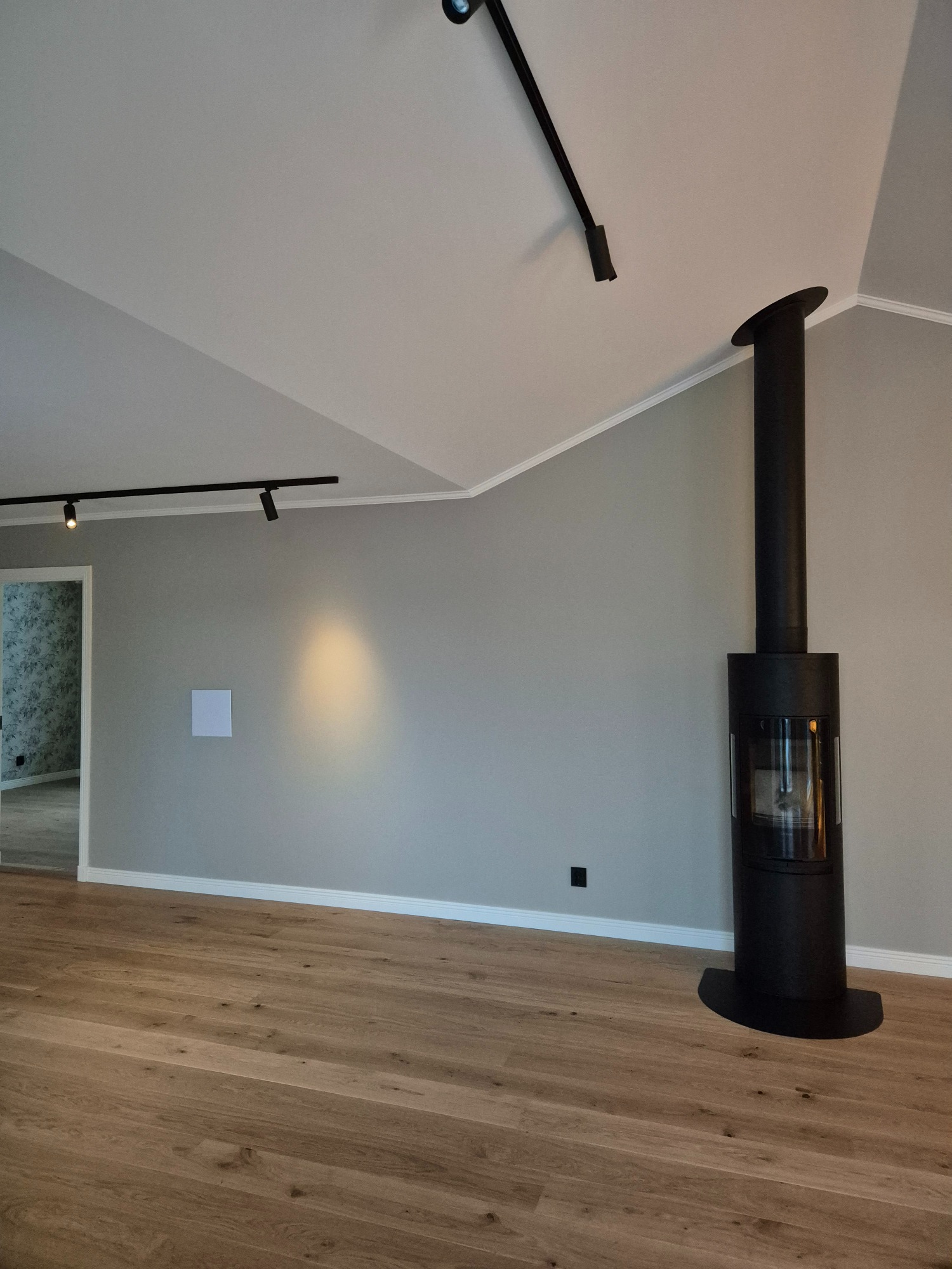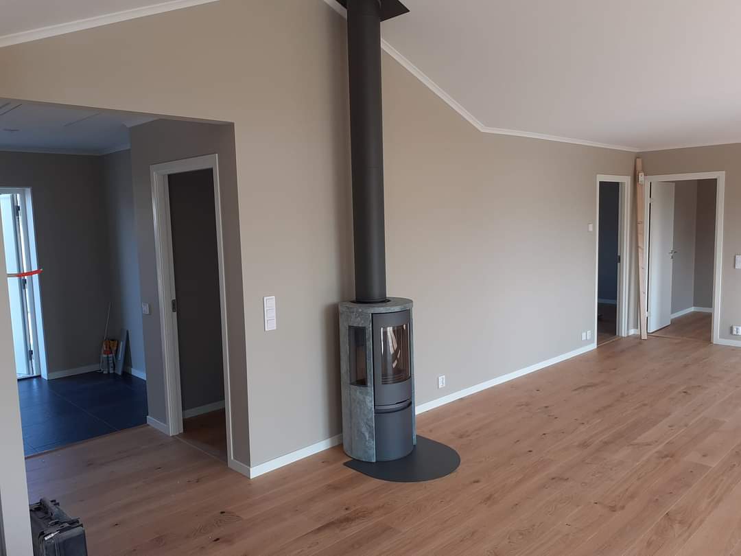 En privatperson som valde att bygga med hustillverkaren A-hus i Kullersta, Eskilstuna. Spacklade och målade hela huset, målade även garaget utvändigt.