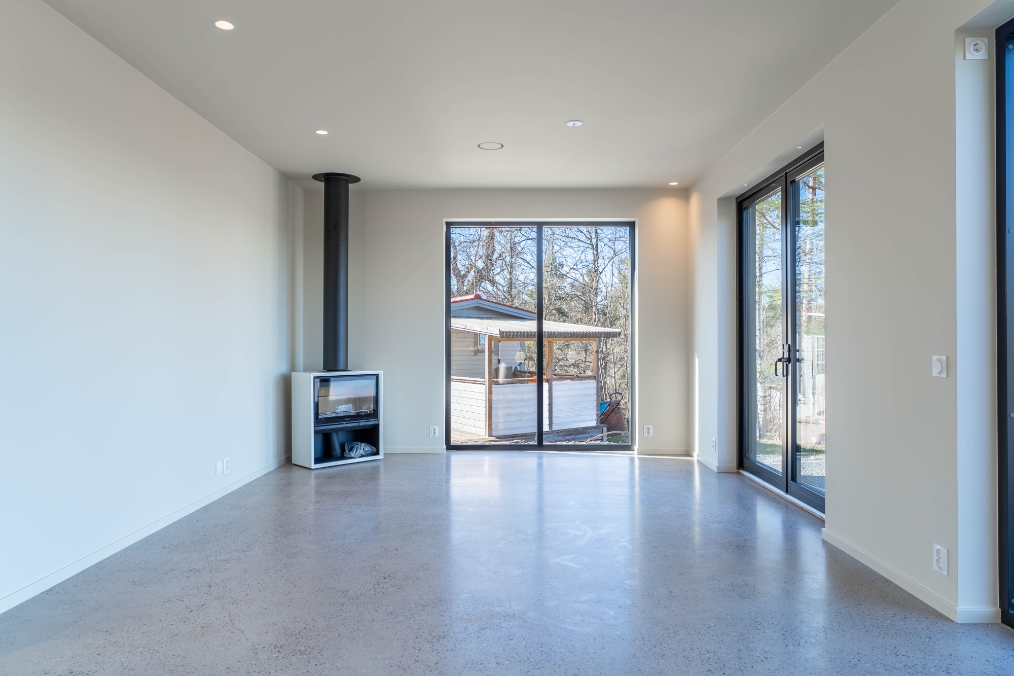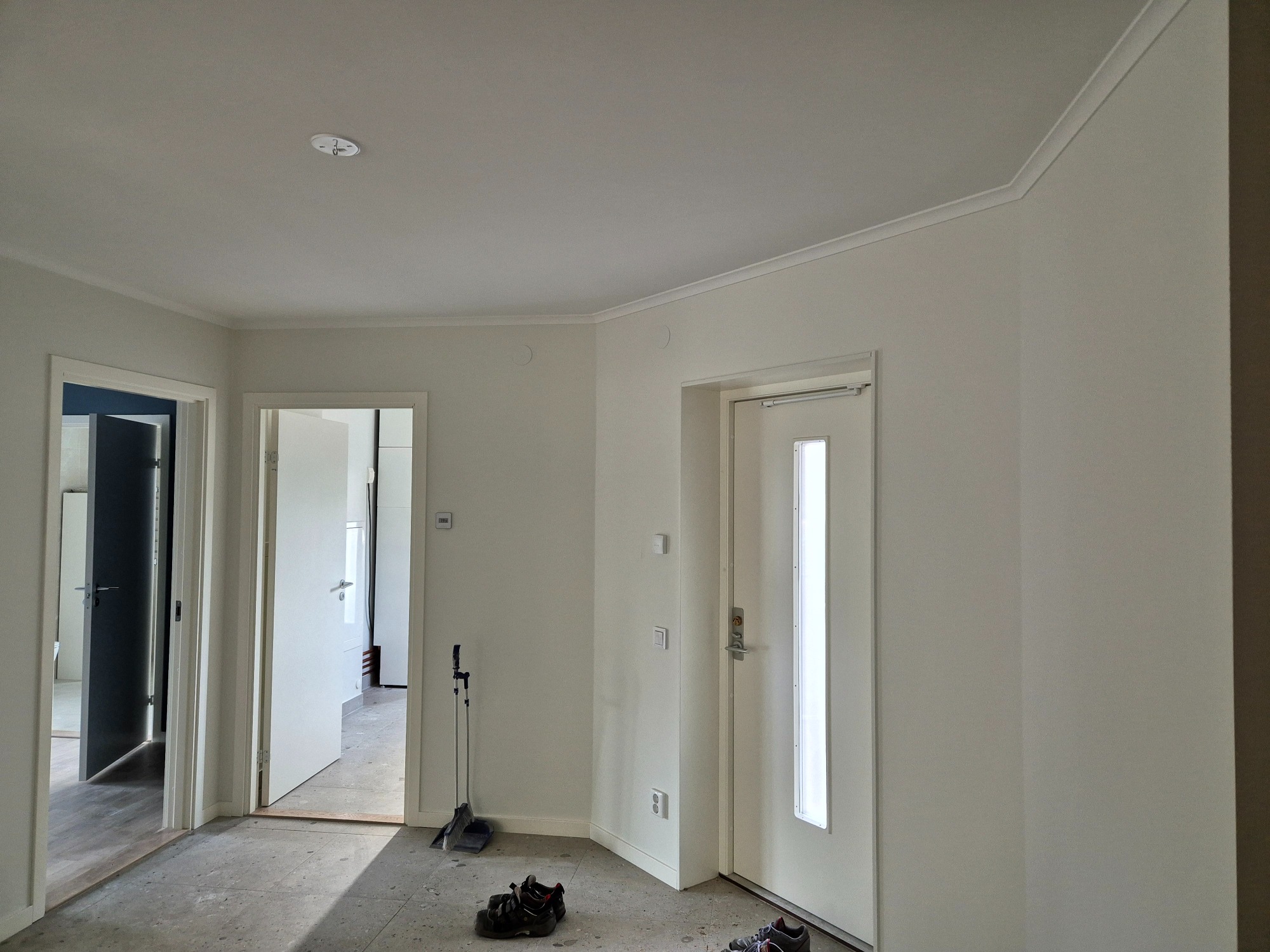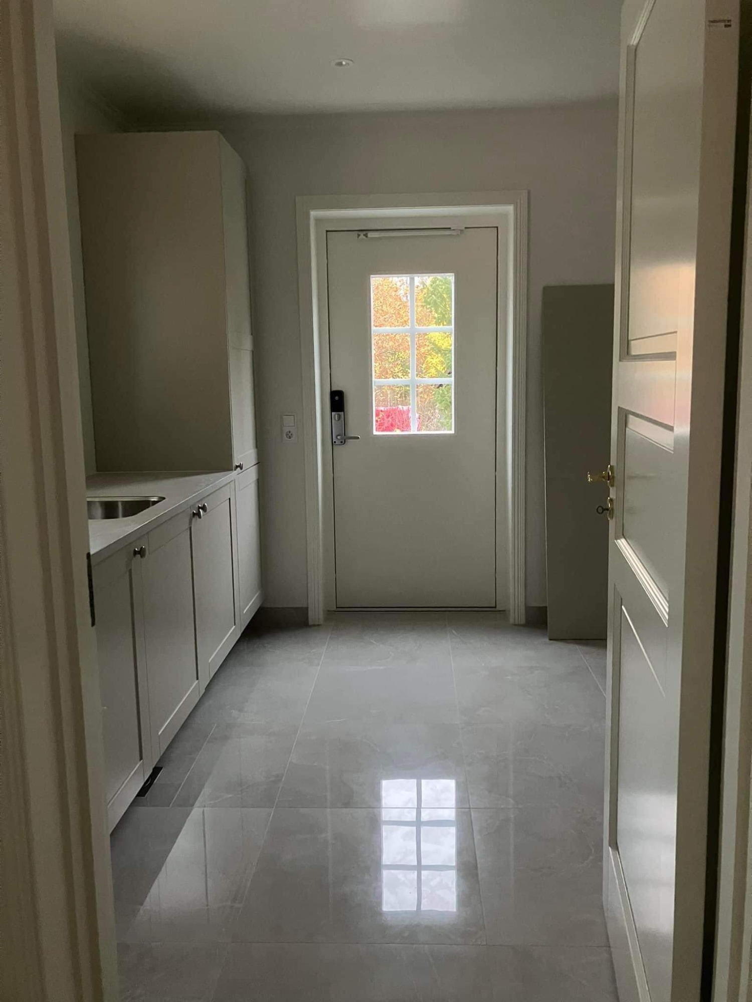 En privatperson som valde att bygga med hustillverkaren A-hus i Kullersta, Eskilstuna. Spacklade och målade hela huset, målade även garaget utvändigt.