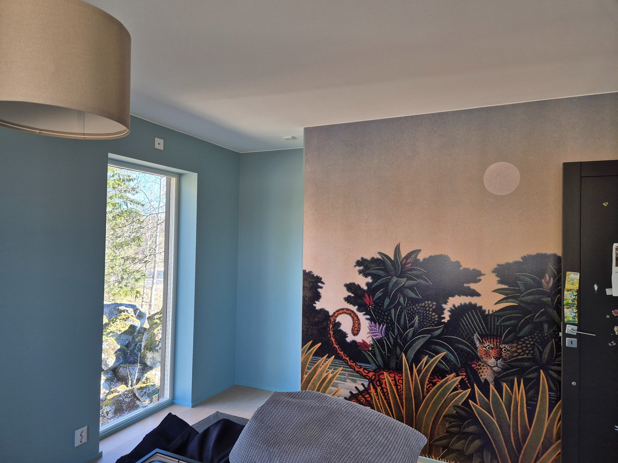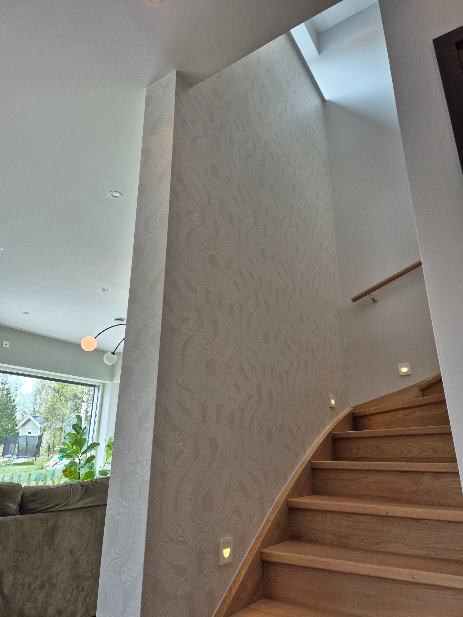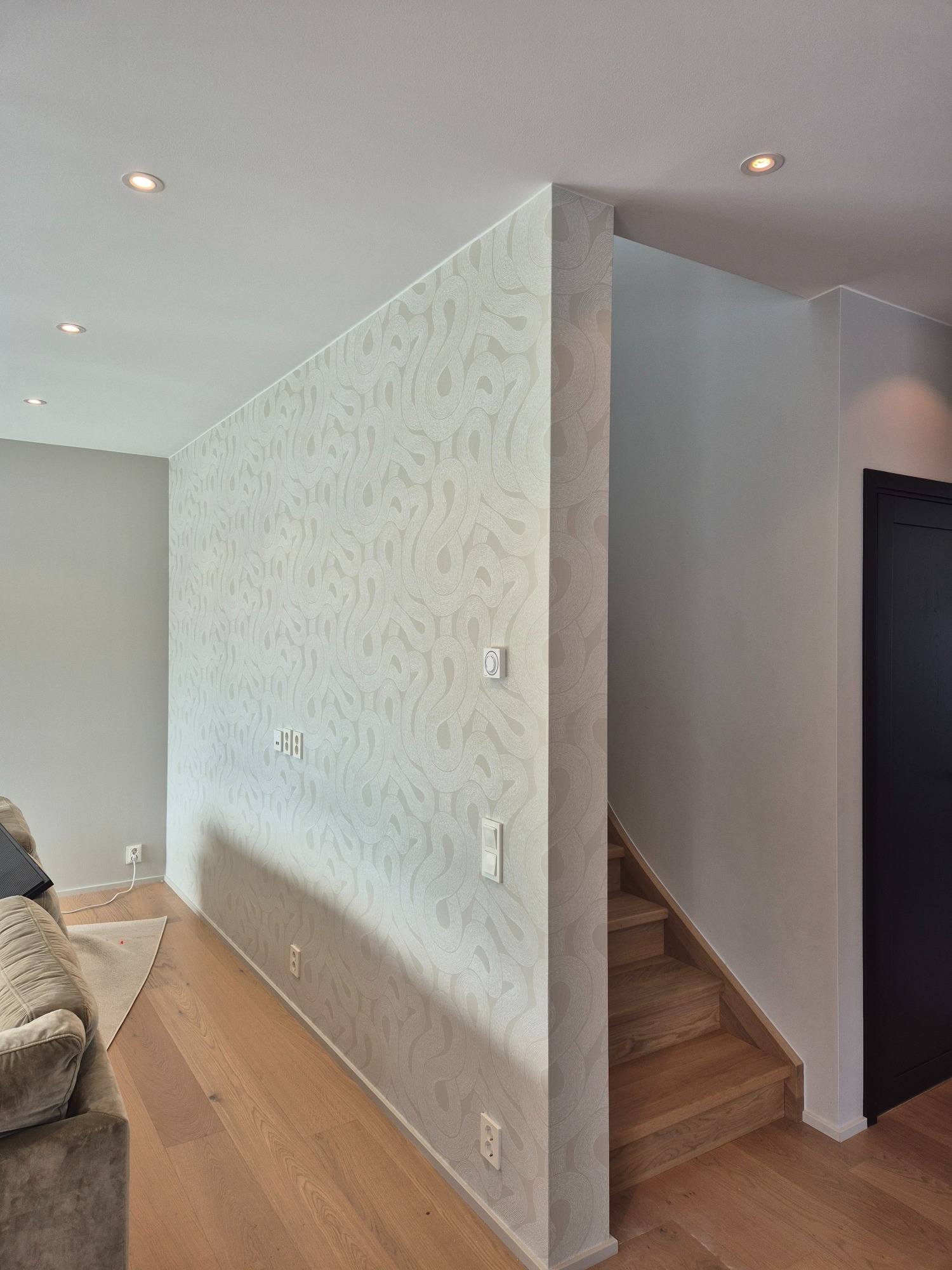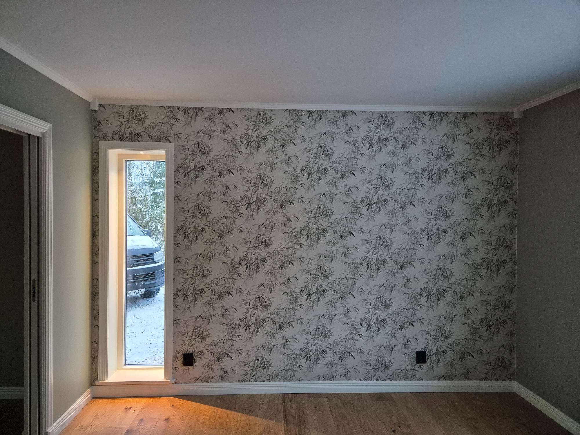 Tapetserade en trappuppgång samt ett vardagsrumstak. Sedan målning i de flesta rum med både snickerier och väggar. Även en allmän uppfräschning.