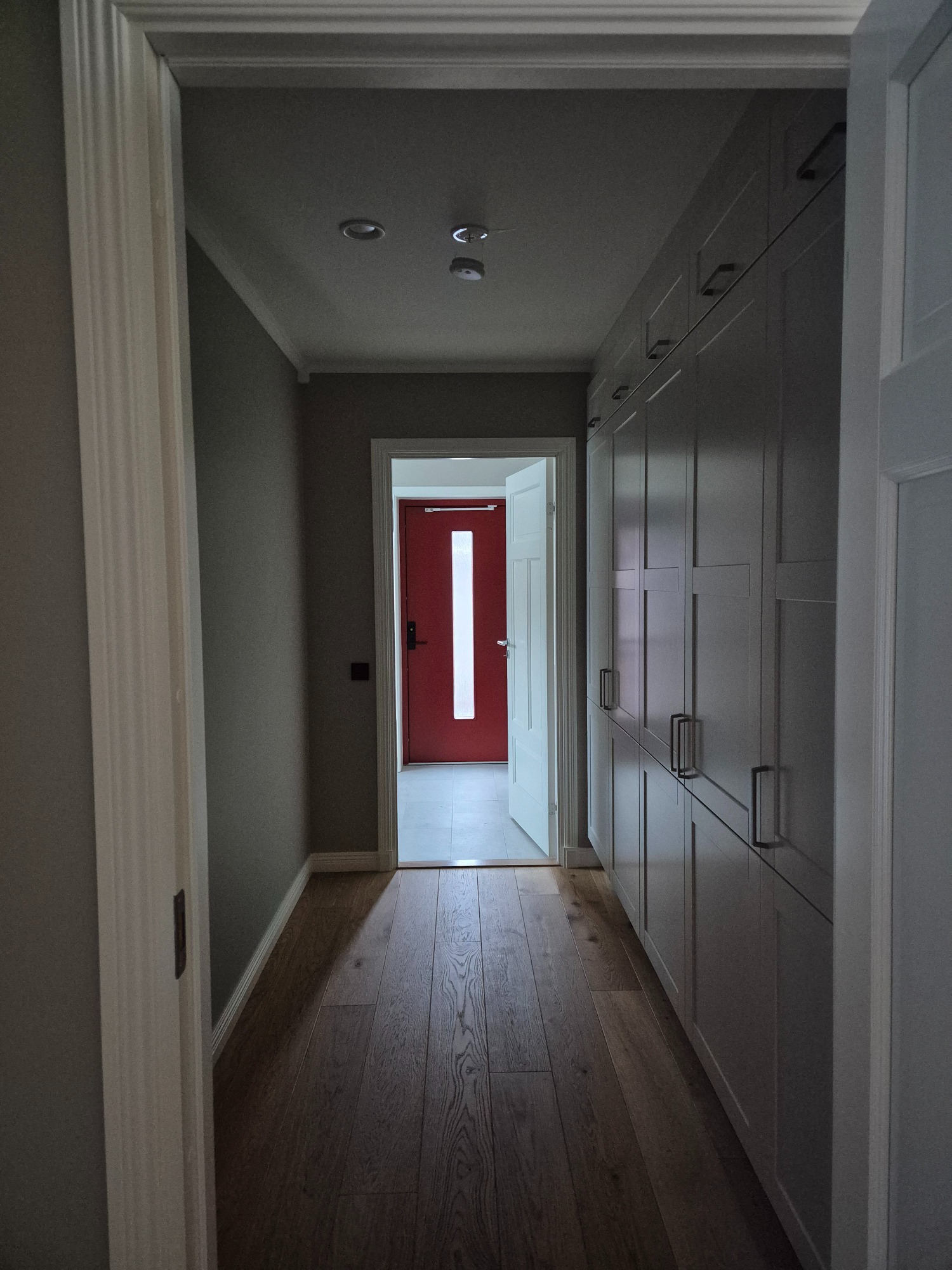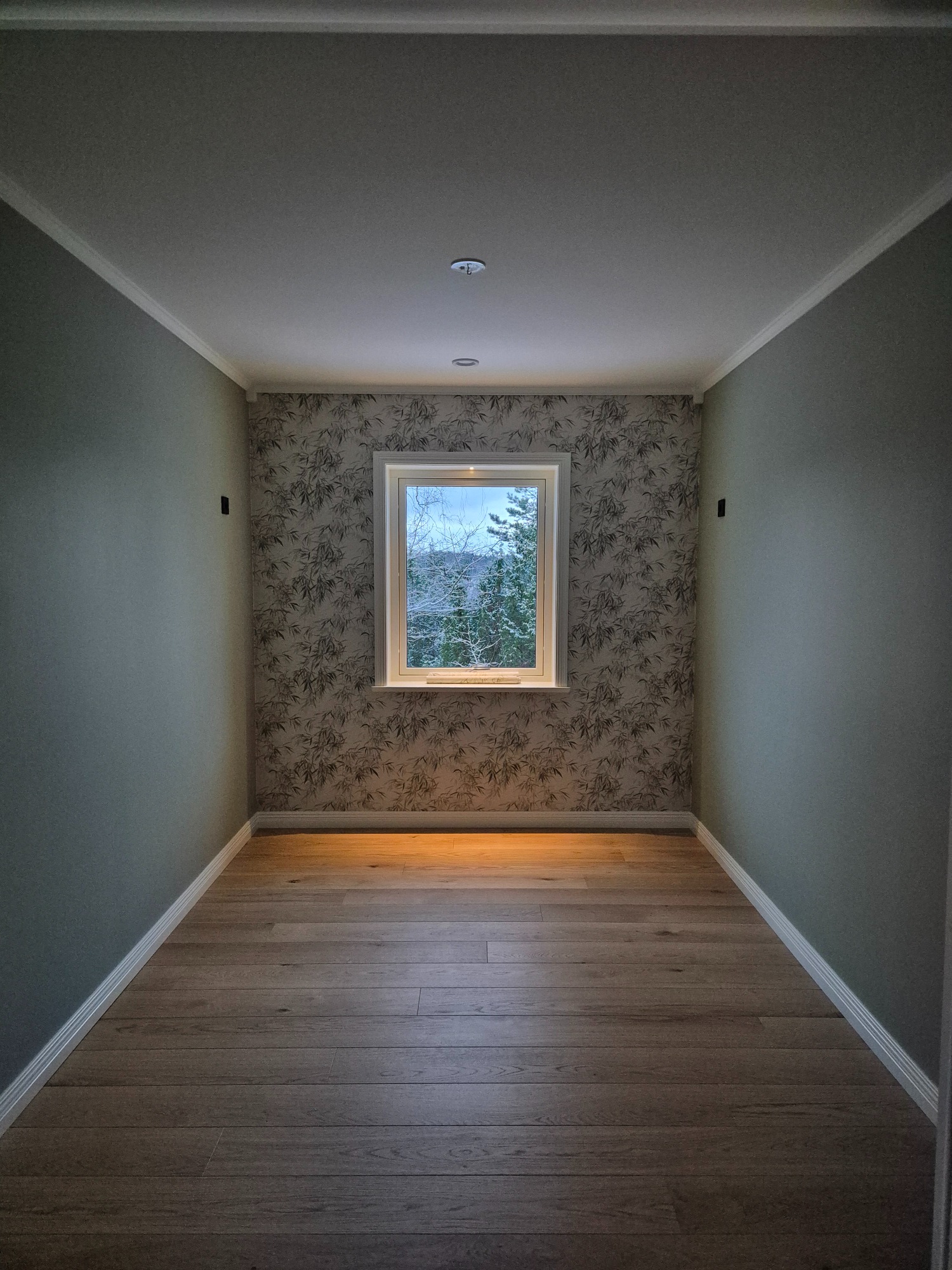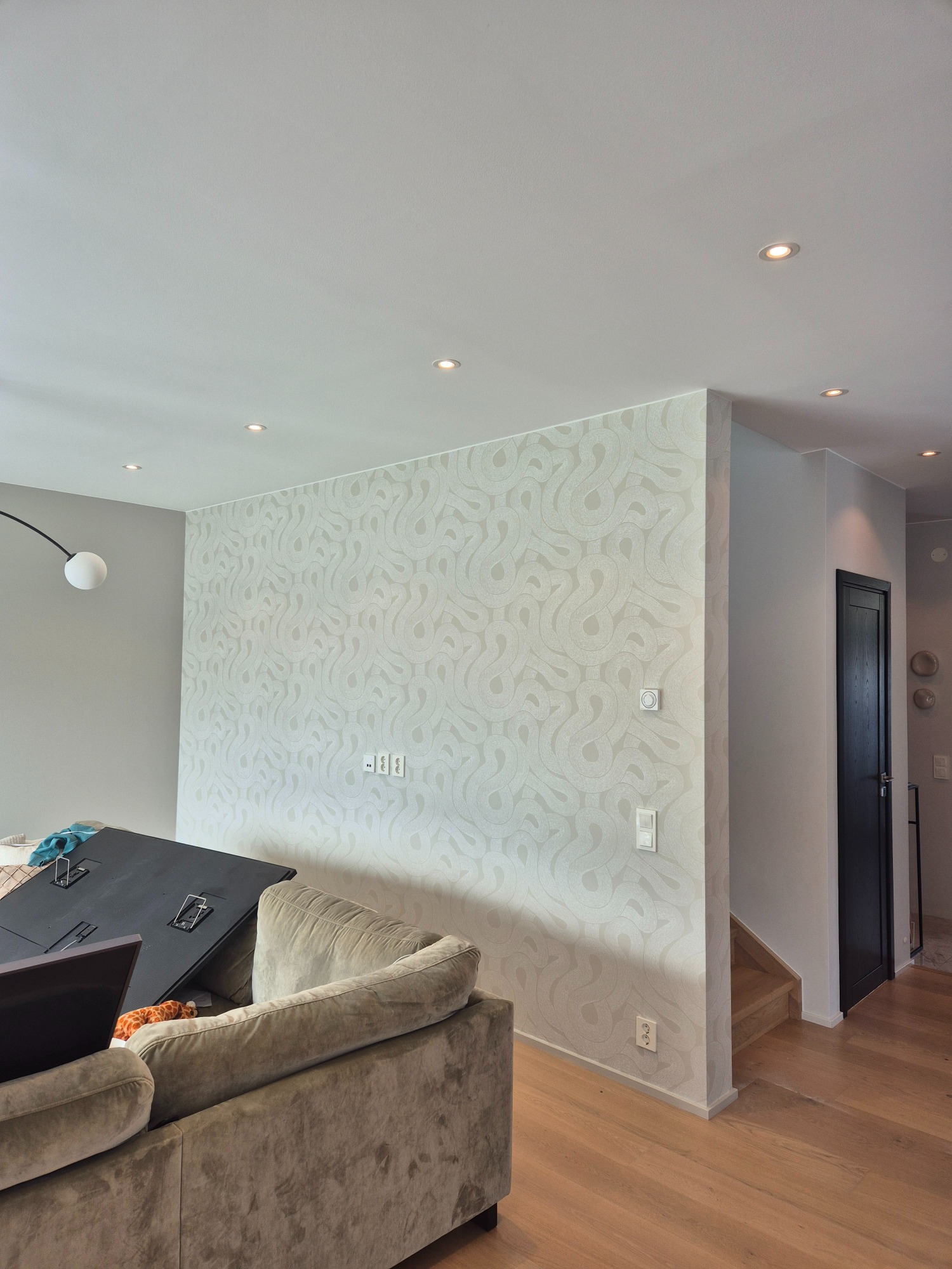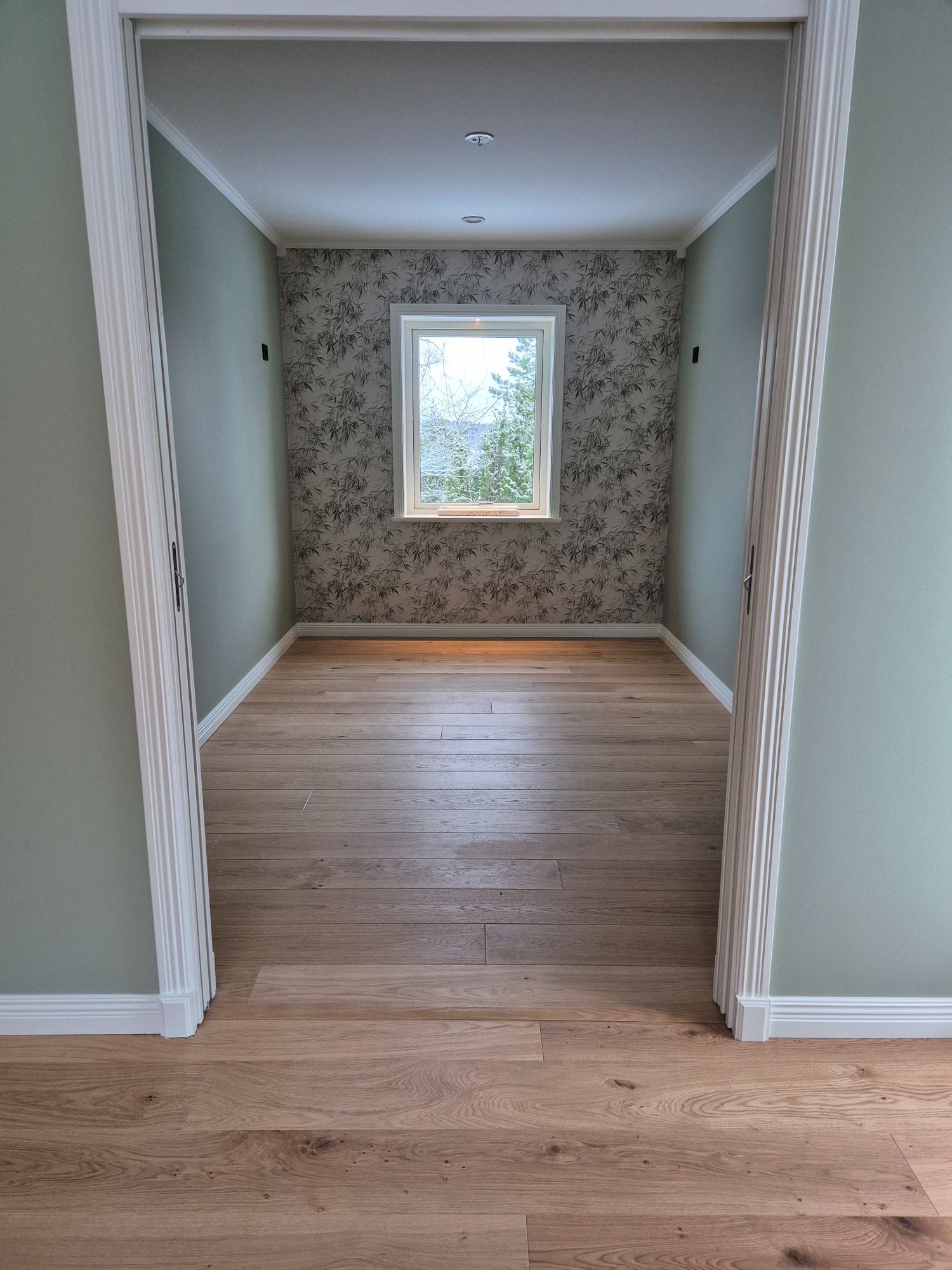 Tapetserade en trappuppgång samt ett vardagsrumstak. Sedan målning i de flesta rum med både snickerier och väggar. Även en allmän uppfräschning.